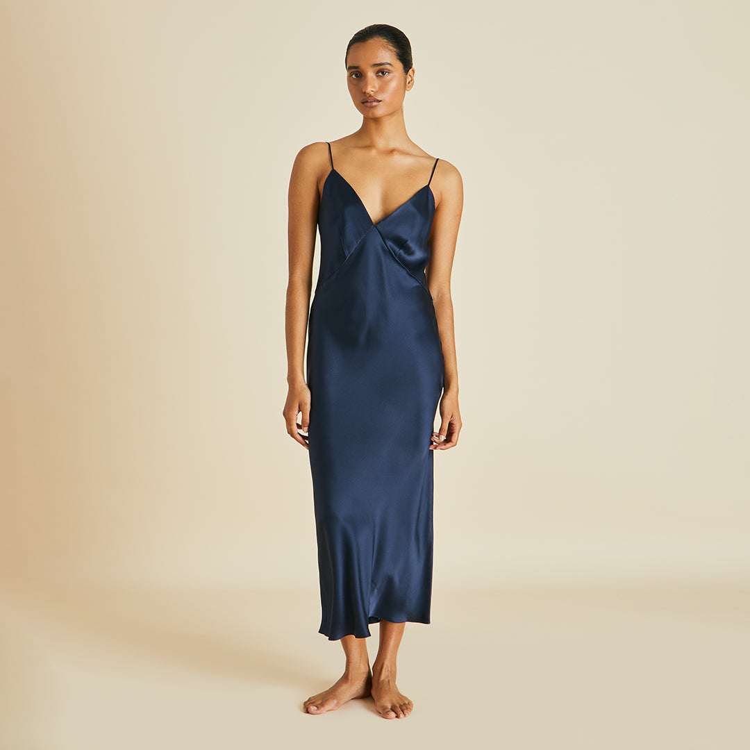 Original, contemporary, and classic–the Issa Navy is an impeccably chic update on the silk slip dress. Olivia von Halle has remastered the slip dress in typically scene-stealing fashion; steal the show, in this luxurious, chic silk slip dress, in the finest navy silk.