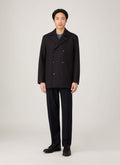 Our modern take on the traditional pea coat, crafted from exceptionally soft boiled wool jersey sourced from a renowned Italian mill. With minimal detailing and a clean, contemporary silhouette, it features a double-breasted front, two internal pockets, and a mid-length cut with a back vent for ease of movement.