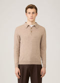 Men's Cashmere Polo Shirt in Oatmeal Melange