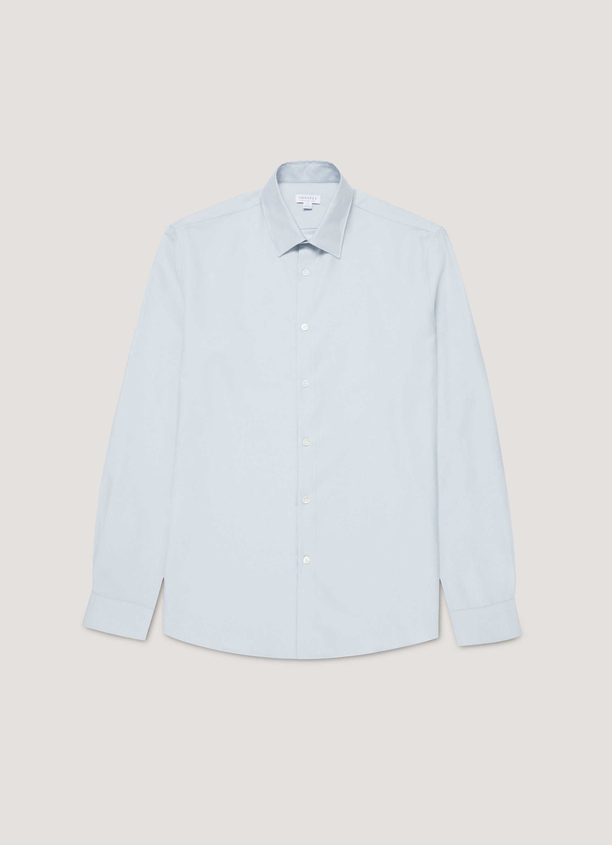 An elegant flannel shirt, crafted from a luxurious Italian blend of cotton and cashmere. The cotton provides a smooth handle, while the cashmere adds exceptional softness and warmth. Finished with natural shell buttons and a true-to-size fit, it offers refined comfort for the cooler months.