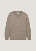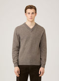 An exceptionally soft V-neck jumper, knitted in Scotland using the finest lambswool yarn from one of the world’s oldest spinners, based in Fife. Washed in pure Scottish spring water to naturally open up the fibres, it has a beautifully soft, smooth feel against the skin. Featuring a contemporary wide neck trim and a regular fit, it’s a timeless piece for the colder months.
