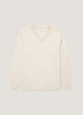 An exceptionally soft V-neck jumper, knitted in Scotland using the finest lambswool yarn from one of the world’s oldest spinners, based in Fife. Washed in pure Scottish spring water to naturally open up the fibres, it has a beautifully soft, smooth feel against the skin. Featuring a contemporary wide neck trim and a regular fit, it’s a timeless piece for the colder months.