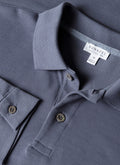 Men's Long Sleeve Piqué Polo Shirt in Selvedge Blue