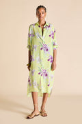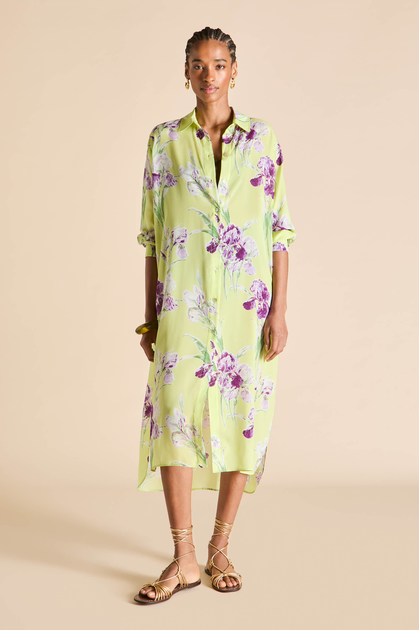 Phoebe Sundial Green Floral Shirt Dress in Silk-Chiffon
