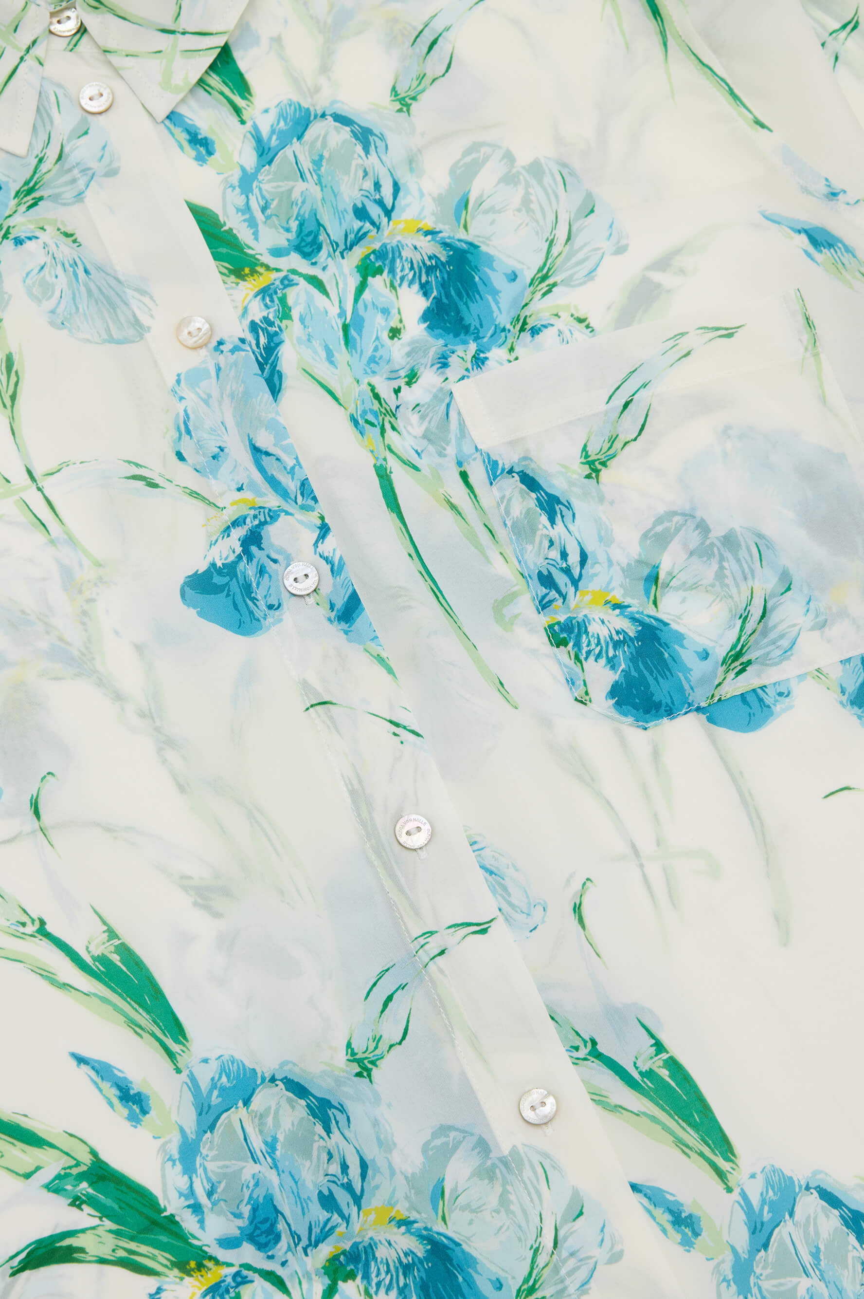 Phoebe Samphire Ivory Floral Shirt Dress in Silk-Chiffon